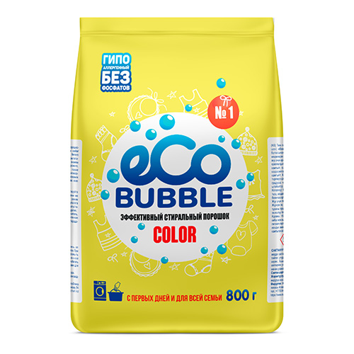 Eco Bubble создан специально для бережной стирки с первых дней жизни малыша и подходит всей семье. Средство эффективно удаляет загрязнения, при этом заботится о чувствительной коже и сохраняет структуру тканей. Порошок подходит для цветных и любых других типов тканей, помогает сохранить яркость вещей и мягкость волокон.