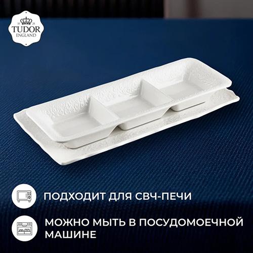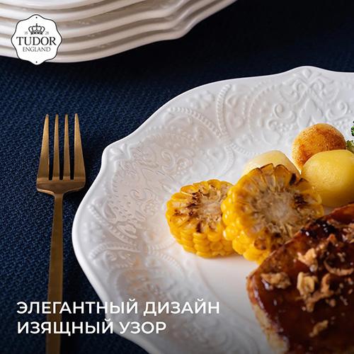 Среди новинок – менажница Tudor England, идеально подходящая для сервировки закусок, и универсальное блюдо Tudor England для подачи закусок, горячих блюд, десертов.